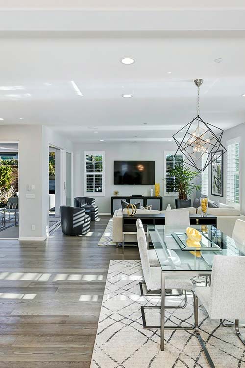 Designer perfect soft contemporary single level home on the hilltop village of Escencia in Rancho Mission Viejo. Features open spacious floor plan including outdoor living areas creating a perfect indoor/outdoor California lifestyle. Gourmet kitchen with large island opening to living room, dining room with Quartz counter tops, top of the line GE appliances, soft closing cabinetry, hardwood floors throughout. Custom designed entertaining exterior with built-in BBQ, bar, outdoor kitchen, 4 separate outdoor sitting areas with 3 fire features, including fireplace with water feature, outdoor sitting area with TV, custom lighting throughout. Reserved for 55+ home buyers located 5 miles from the coast and situated between San Juan Capistrano and San Clemente. Enjoy a resort lifestyle with numerous amenities.